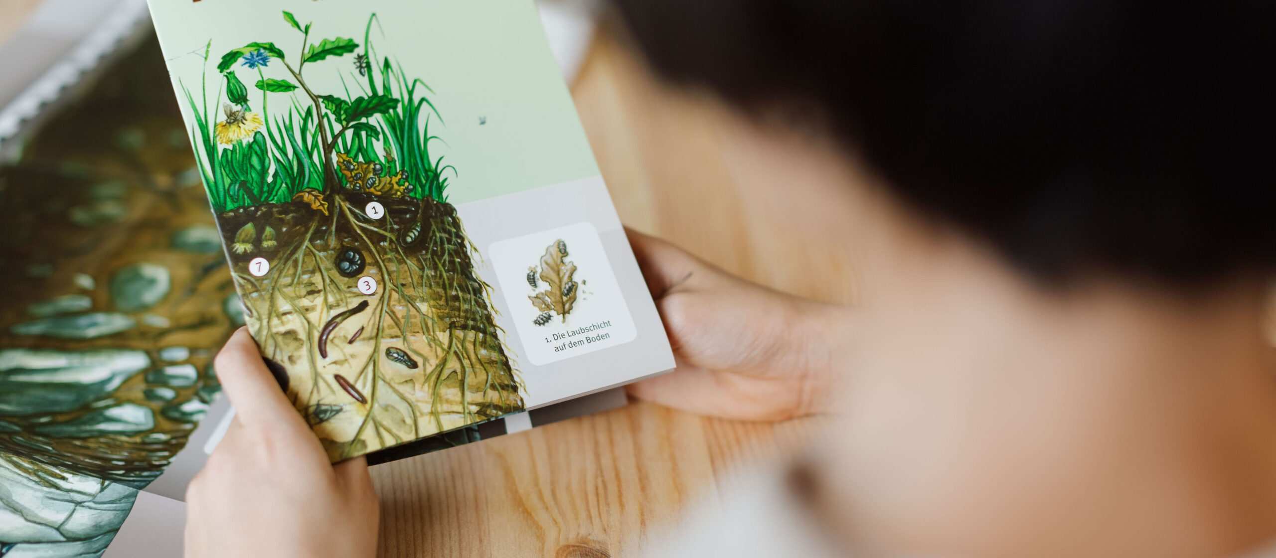 Im Lernangebot «Bodenreise» führt ein virtueller Bodenlift Schülerinnen und Schüler der Mittelstufe durch den Boden zu insgesamt sieben verschiedenen Lernstationen. Für den praktischen Teil steht ein Leporello zur Verfügung, der den Bodenquerschnitt zeigt und verschiedene Experimente anleitet. Jede Lernstation besteht aus einer Lernsequenz, die mit zielgerichteten Informationen eine der folgenden Leitfragen beantwortet: Was geschieht mit den Blättern auf dem Boden? Welche Aufgabe übernehmen Pilze und Bakterien für den Boden? Welche Rolle spielen die Bodentiere für den Boden? Weshalb ist das Wasser wichtig für den Boden? Wie ist Boden entstanden? Welche Kräfte wirken bei der Durchmischung der Bodenbestandteile? Was gibt der Boden den Pflanzen zum Gedeihen und was geben die Pflanzen dem Boden?