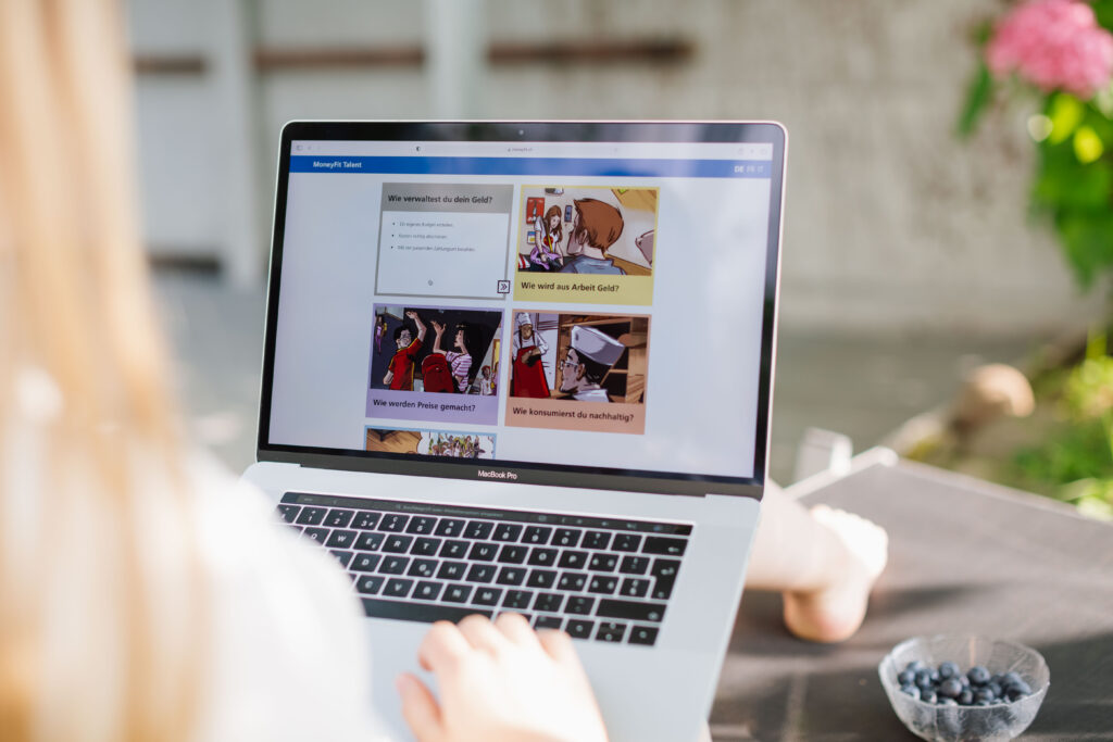 Zyklus 3: Im Modul «Geld verwalten» des digitalen Lehrmittels MoneyFit Talent lernen die Schüler:innen, ein Budget zu erstellen, Kosten richtig abzuschätzen und mit der passenden Zahlungsart zu bezahlen. Alternativ kann auch das gedruckte Lehrmittel bestellt werden.